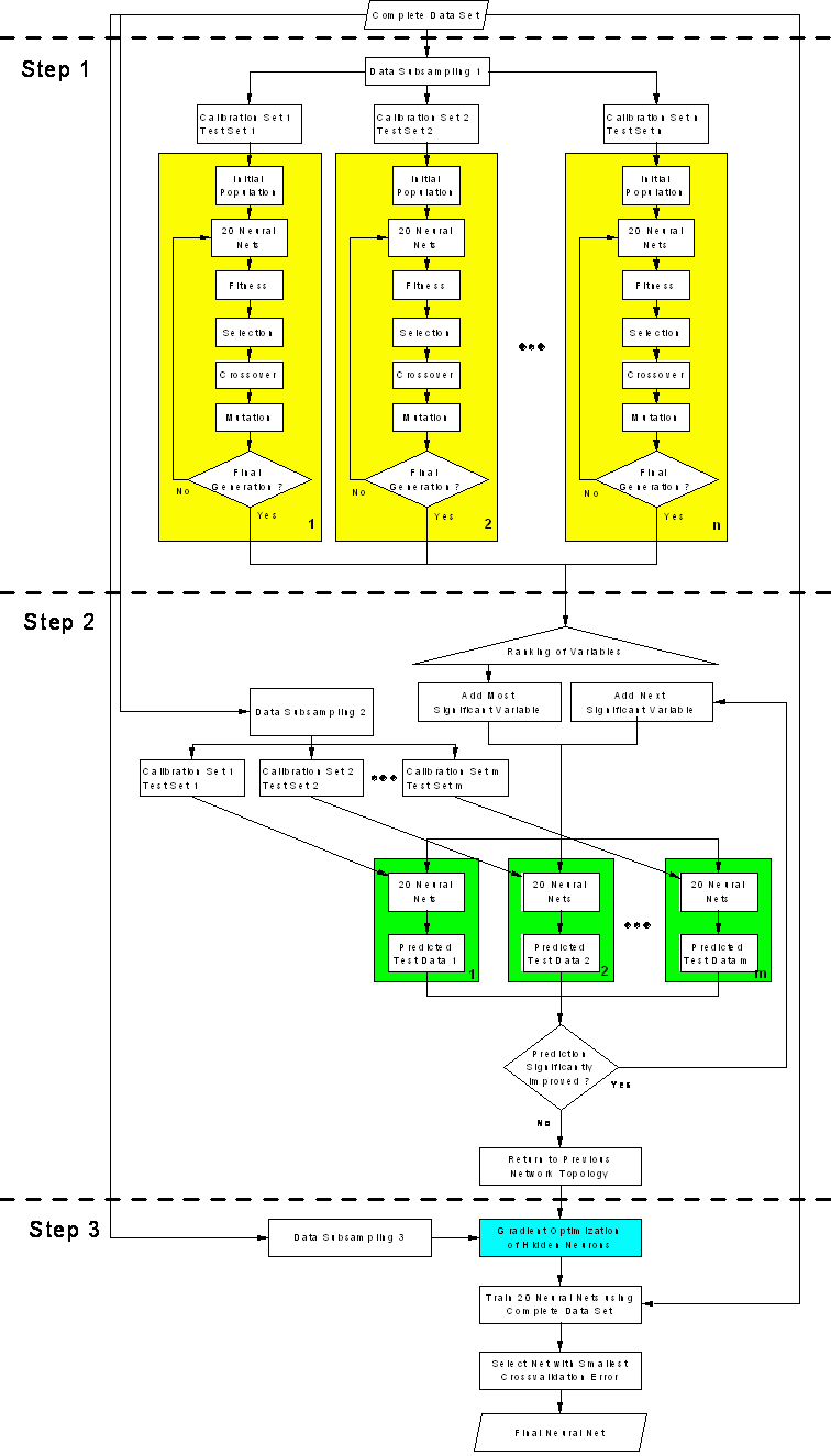 and test data subsets (yellow boxes in the flow diagram). Variables, which are